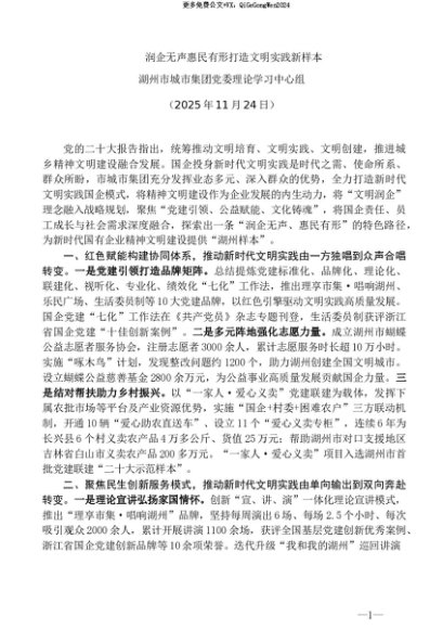 / 党组学习:20251124润企无声惠民有形打造文明实践新样本——湖州市城市集团党委理论学习中心组