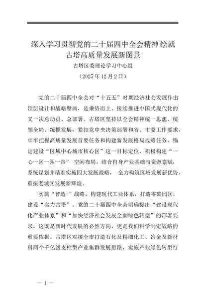 / 党组学习:20251202深入学习贯彻党的二十届四中全会精神 绘就古塔高质量发展新图景——古塔区委理论学习中心组