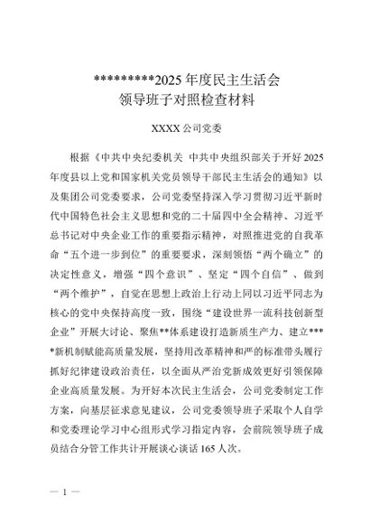/ 党建原创:2026-0001 2025年度民主生活会领导班子对照检查材料
