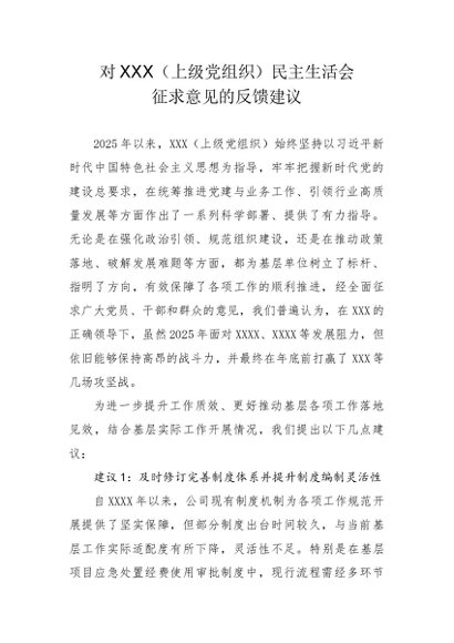 / 党建原创:2026-0008 对XXX(上级党组织)民主生活会征求意见的反馈建议1