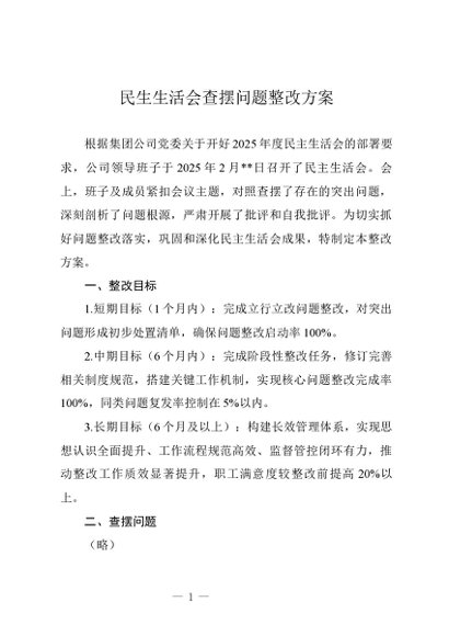 / 党建原创:2026-0015 XXX单位2025年度民主生活会查摆问题整改方案