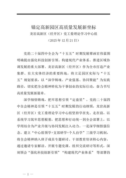/ 党组学习:20251221锚定高新园区高质量发展新坐标——龙岩高新区(经开区)党工委理论学习中心组