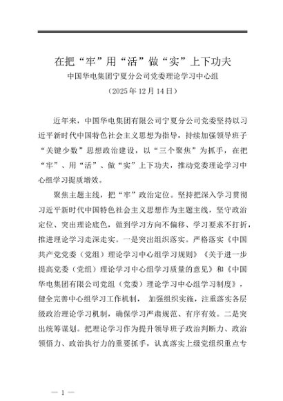 党组学习:20251214在把“牢”用“活”做“实”上下功夫——中国华电集团宁夏分公司党委理论学习中心组