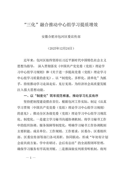 / 党组学习:20251224“三化”融合推动中心组学习提质增效——安徽合肥市包河区委宣传部