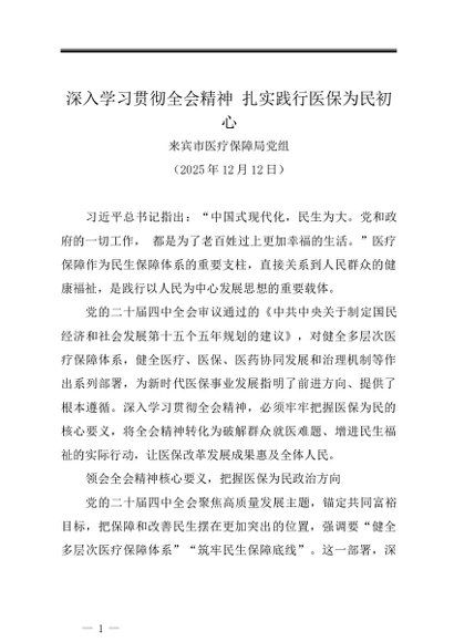 党组学习:20251212深入学习贯彻全会精神 扎实践行医保为民初心——来宾市医疗保障局党组