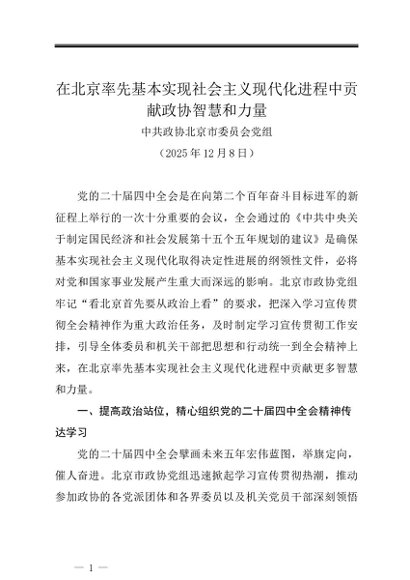 / 党组学习:20251208在北京率先基本实现社会主义现代化进程中贡献政协智慧和力量——中共政协北京市委员会党组