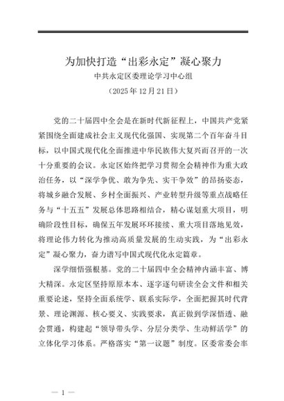 / 党组学习:20251221为加快打造“出彩永定”凝心聚力——中共永定区委理论学习中心组