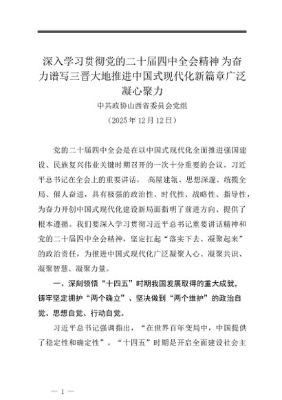 党组学习:20251212深入学习贯彻党的二十届四中全会精神 为奋力谱写三晋大地推进中国式现代化新篇章广泛凝心聚力——中共政协山西省委员会党组