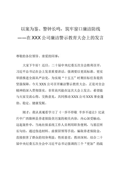 / 党建原创:2026-0013 以案为鉴、警钟长鸣,筑牢窗口廉洁防线——在XXX公司廉洁警示教育大会上的发言