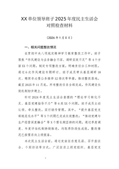 / 党建原创:2026-0011 XX单位领导班子2025年度民主生活会对照检查材料
