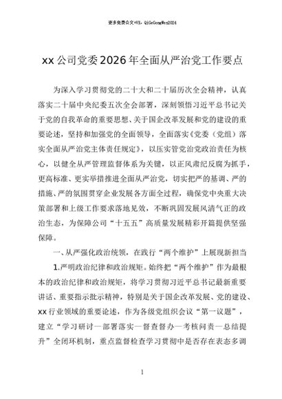 党建原创:2026-0049 公司党委2026年全面从严治党工作要点