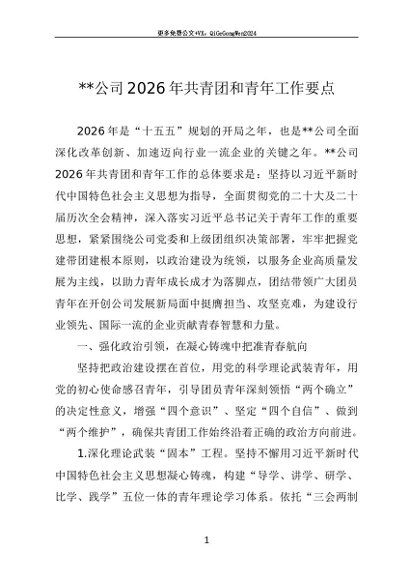 党建原创:2026-0034 公司2026年共青团和青年工作要点