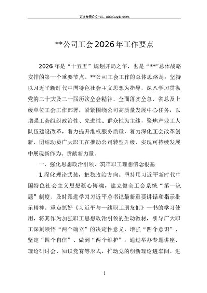 / 党建原创:2026-0046 XX公司工会2026年工作要点