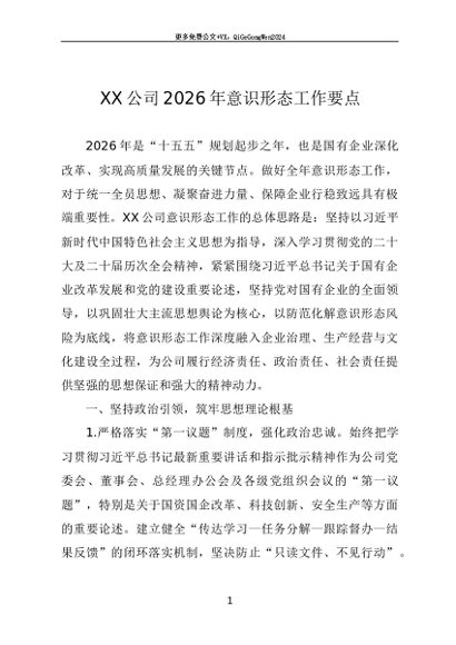 / 党建原创:2026-0035 XX公司2026年意识形态工作要点