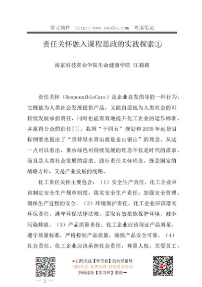 / 调研报告:20240730责任关怀融入课程思政的实践探索——南京科技职业学院生命健康学院