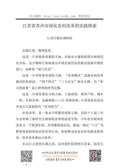 / 调研报告:20240730江苏省苏州市深化农村改革的实践探索——江苏日报社调研组