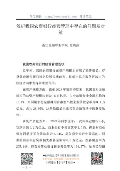 / 调研报告:20240730浅析我国农商银行经营管理中存在的问题及对策——浙江金融职业学院