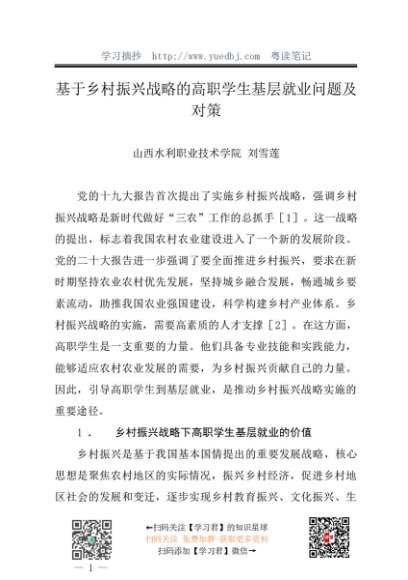/ 调研报告:20240730基于乡村振兴战略的高职学生基层就业问题及对策——山西水利职业技术学院 刘雪莲