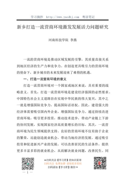 调研报告:20240730新乡打造一流营商环境激发发展活力问题研究——河南科技学院