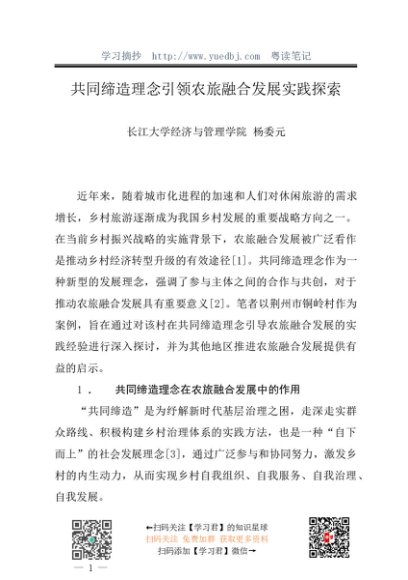 调研报告:20240730共同缔造理念引领农旅融合发展实践探索——长江大学经济与管理学院