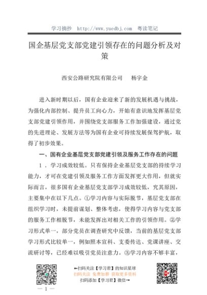 / 调研报告:20240630国企基层党支部党建引领存在的问题分析及对策——西安公路研究院有限公司