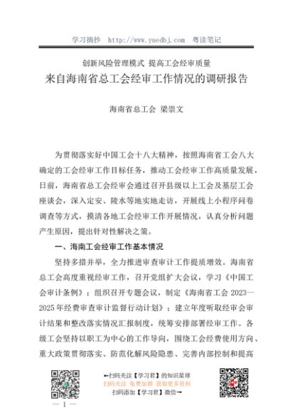 / 调研报告:20240630来自海南省总工会经审工作情况的调研报告——海南省总工会