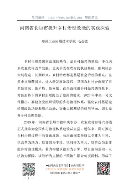 / 调研报告:20240630河南省长垣市提升乡村治理效能的实践探索——郑州工业应用技术学院