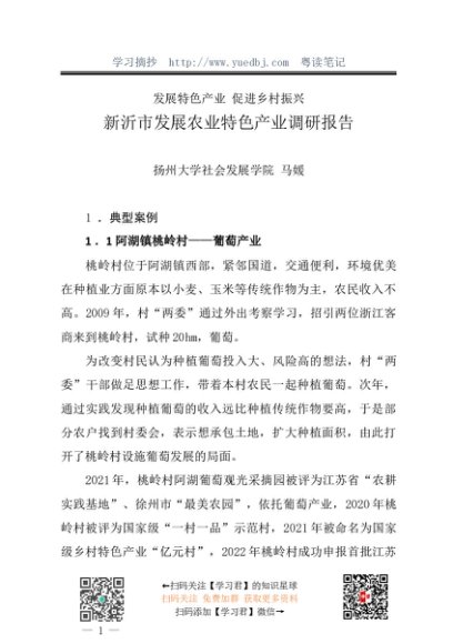/ 调研报告:20240630新沂市发展农业特色产业调研报告——扬州大学社会发展学院