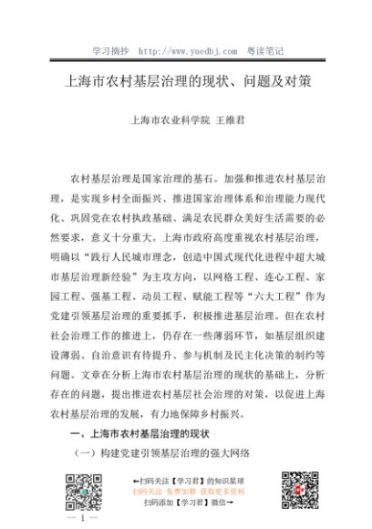 / 调研报告:20240630上海市农村基层治理的现状、问题及对策——上海市农业科学院