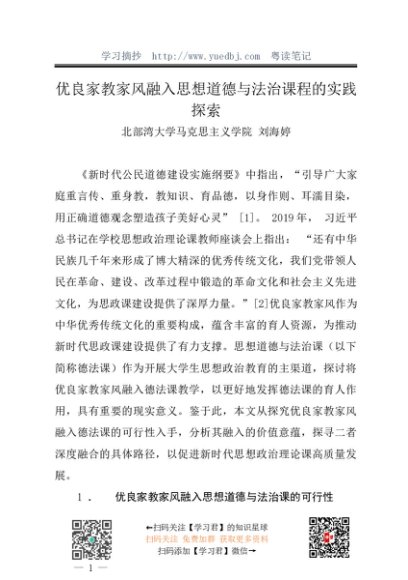 / 调研报告:20240730优良家教家风融入思想道德与法治课程的实践探索——北部湾大学马克思主义学院
