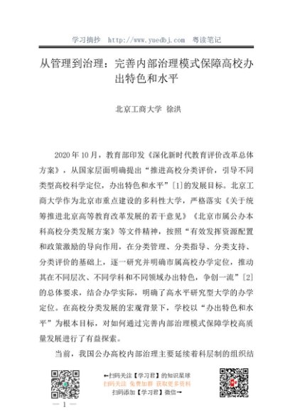 / 调研报告:20240730从管理到治理:完善内部治理模式保障高校办出特色和水平——北京工商大学 徐洪