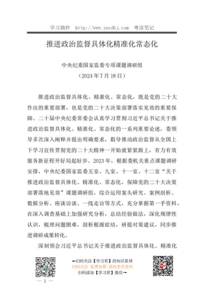 / 调研报告:20240718推进政治监督具体化精准化常态化——中央纪委国家监委专项课题调研组