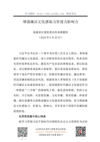 / 调研报告:20240620增强廉洁文化感染力穿透力影响力——福建省纪委监委宣传部课题组