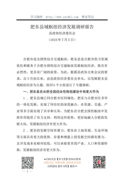 / 调研报告:20240705肥东县域枢纽经济发展调研报告——县政协经济委员会