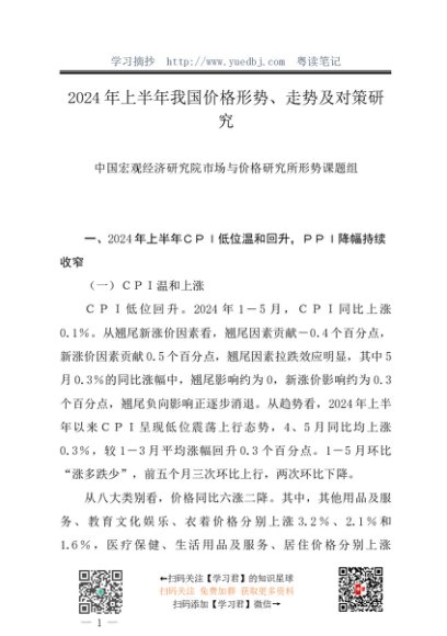 调研报告:20240730今年2024年上半年我国价格形势、走势及对策研究——中国宏观经济研究院市场与价格研究所形势课题组