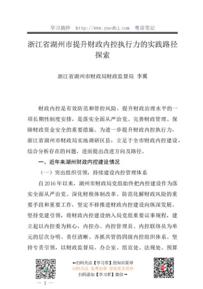 / 调研报告:20240630浙江省湖州市提升财政内控执行力的实践路径探索——浙江省湖州市财政局财政监督局