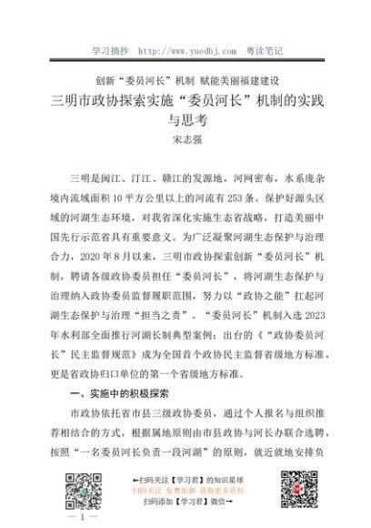 / 调研报告:20240630三明市政协探索实施“委员河长”机制的实践与思考