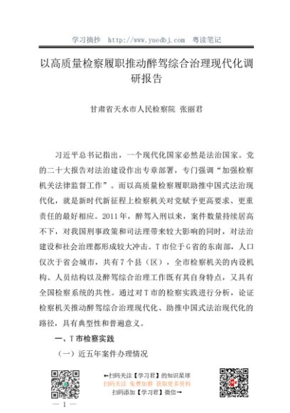 / 调研报告:20240630以高质量检察履职推动醉驾综合治理现代化调研报告——甘肃省天水市人民检察院