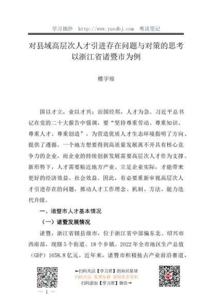 / 调研报告:20240530对县域高层次人才引进存在问题与对策的思考——以浙江省诸暨市为例