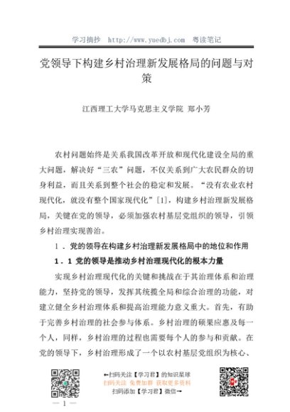 调研报告:20240630党领导下构建乡村治理新发展格局的问题与对策——江西理工大学马克思主义学院