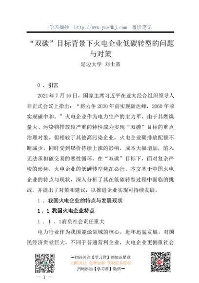 / 调研报告:20240630“双碳”目标背景下火电企业低碳转型的问题与对策