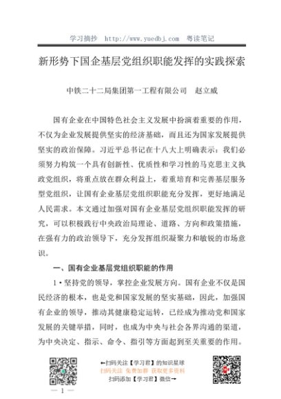 / 调研报告:20240630新形势下国企基层党组织职能发挥的实践探索——中铁二十二局集团第一工程有限公司