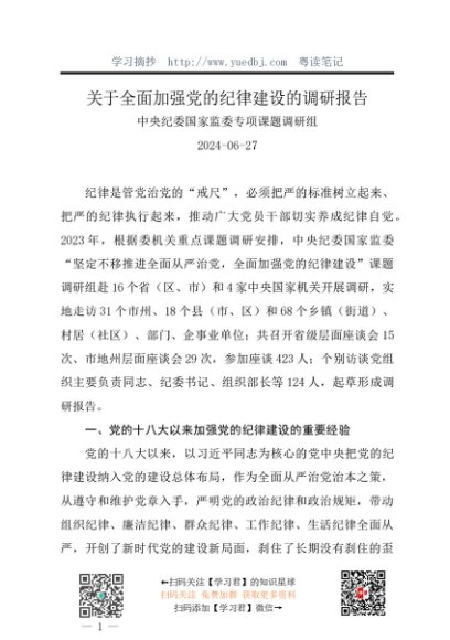 / 调研报告:20240627关于全面加强党的纪律建设的调研报告——中央纪委国家监委专项课题调研组