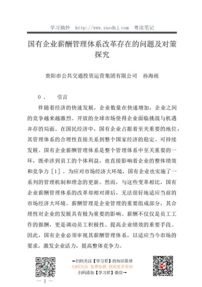 / 调研报告:20240530国有企业薪酬管理体系改革存在的问题及对策探究——贵阳市公共交通投资运营集团有限公司