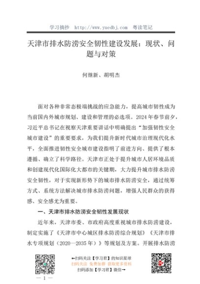 / 调研报告:20240530天津市排水防涝安全韧性建设发展:现状、问题与对策