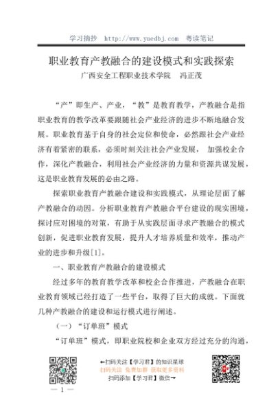 调研报告:20240430职业教育产教融合的建设模式和实践探索——广西安全工程职业技术学院 冯正茂