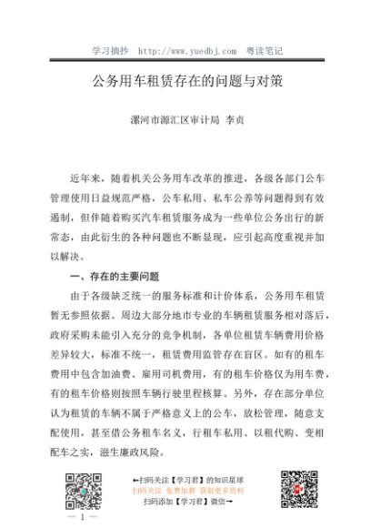 / 调研报告:20240530公务用车租赁存在的问题与对策——漯河市源汇区审计局