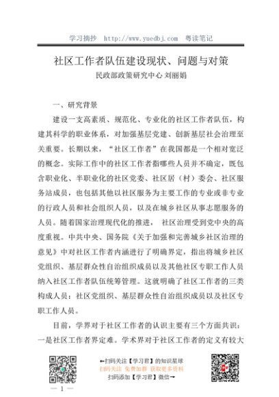 / 调研报告:20240430社区工作者队伍建设现状、问题与对策——民政部政策研究中心 刘丽娟