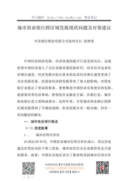 / 调研报告:20240530城市商业银行跨区域发展现状问题及对策建议——河北银行股份有限公司沧州分行 赵林伟