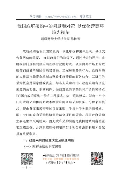 / 调研报告:20240328我国政府采购中的问题和对策 以优化营商环境为视角——新疆财经大学法学院马传智